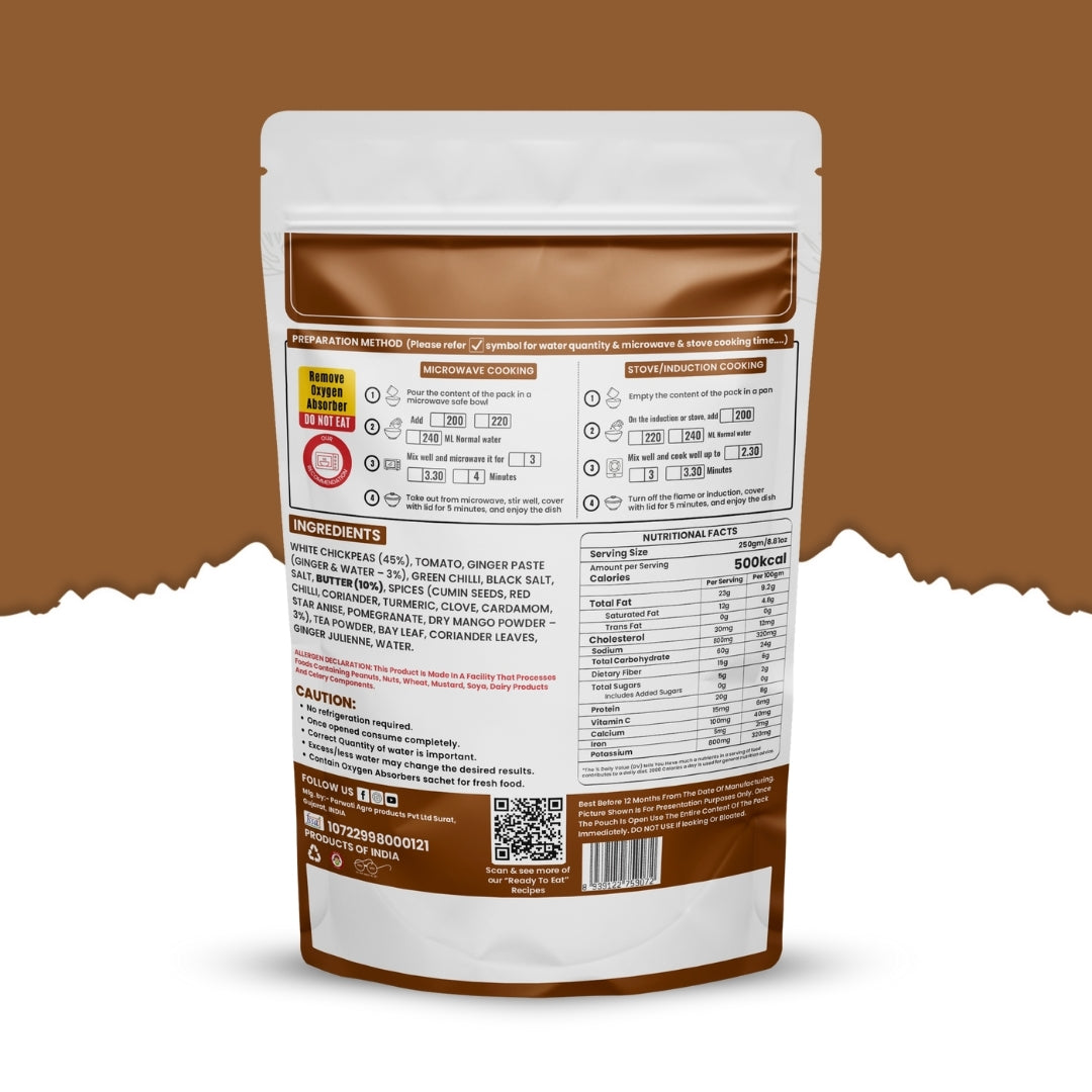 - Serve & Savor: Indulge in the rich and flavorful Chole Masala (Without Onion & Garlic) without the hassle of cooking.