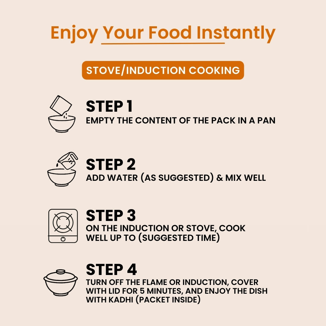 Whether you’re craving a light meal, a recovery food, or simply homestyle comfort, this khichdi is your go-to choice. Quick, hearty, and satisfying – just heat and enjoy.