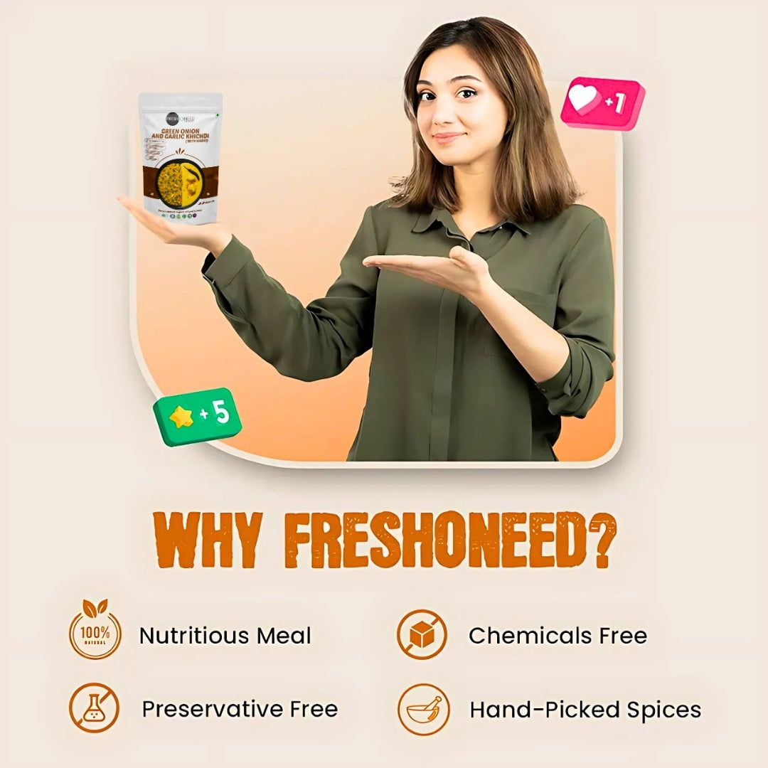 Introducing Freshoneed’s Ready-to-Eat Green Garlic & Onion Khichdi – Comfort, Nutrition & Aroma in Every Bite!