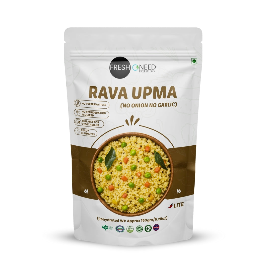 Experience the convenience and nourishment of Rava Upma (Without Onion & Garlic) in a ready-to-eat format. Order now and elevate your dining experience with the comforting flavors of this friendly delicacy from Freshoneed.