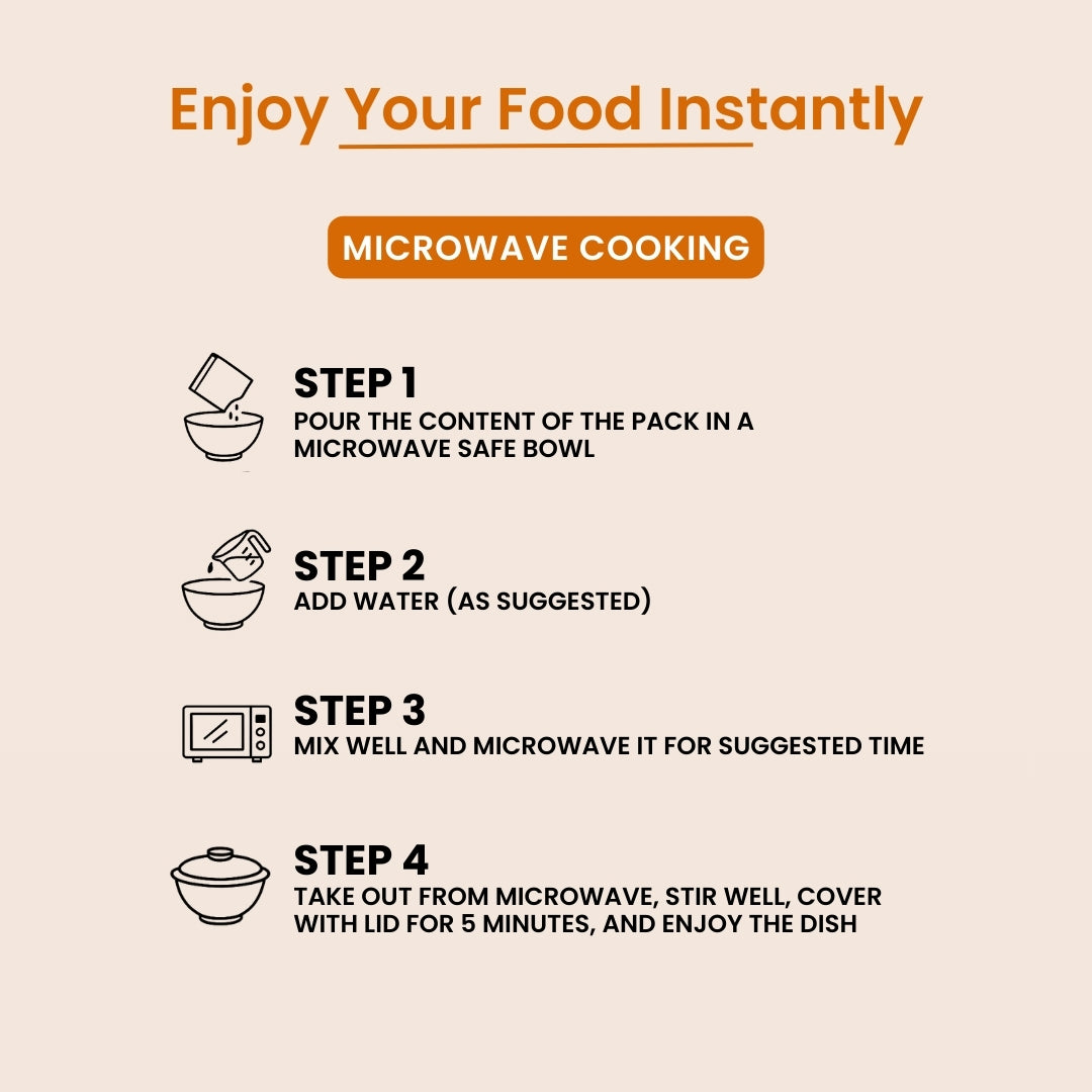 - Heat & Serve: Once rehydrated, heat the Rava Upma (Without Onion & Garlic) on the stove or in the microwave until heated through, ensuring the flavors are fully developed.