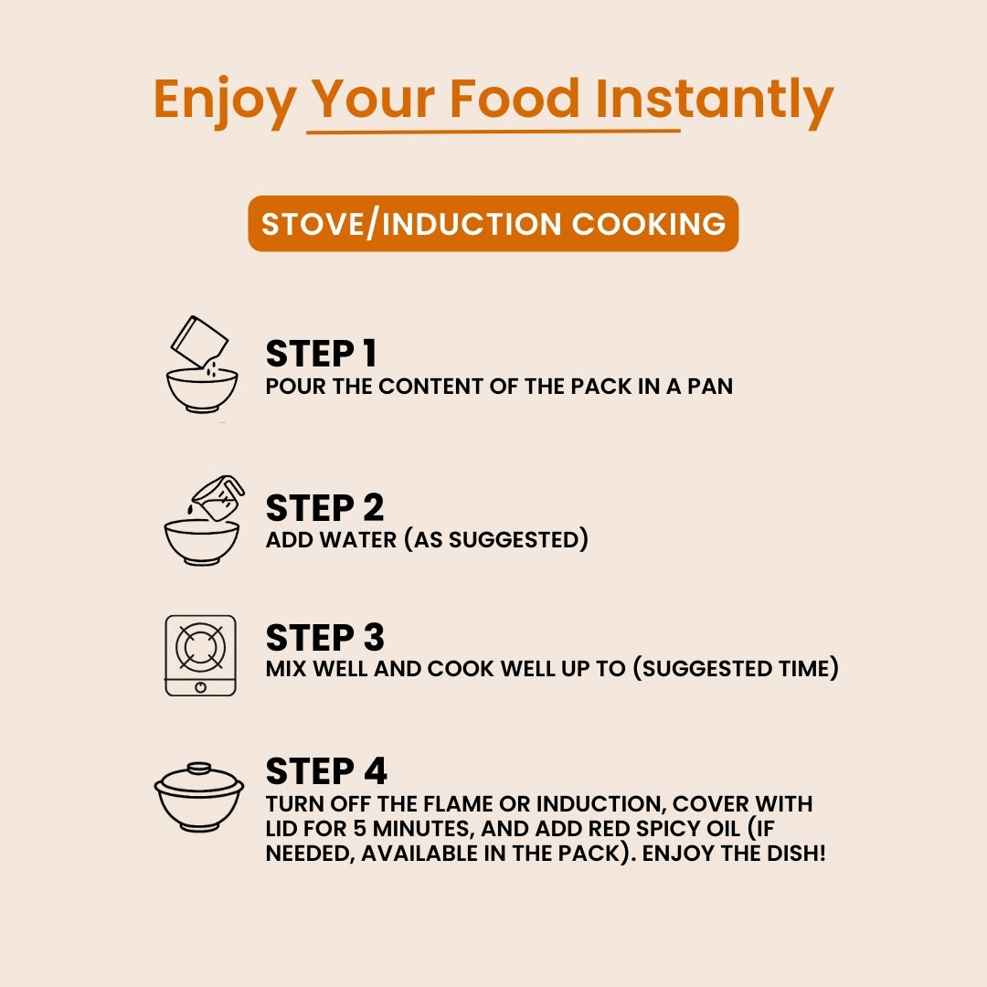 - Open & Rehydrate: Simply open the pack, add hot water, and let the Jeera Aloo (Without Onion & Garlic) rehydrate, allowing the flavors to infuse.