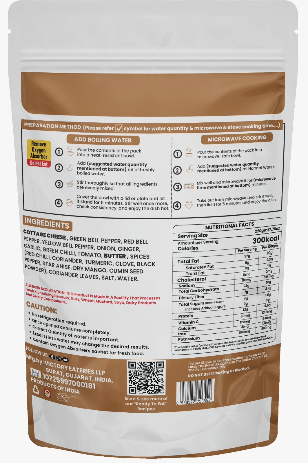 Versatile Pleasure: Designed for those who appreciate the simplicity of a hearty meal, our Ready-to-Eat Paneer Bhurji Jain is a versatile option for diverse palates.