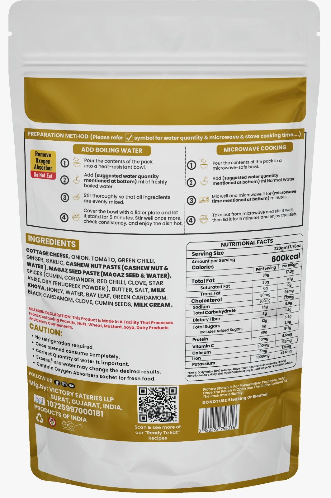 Open & Reheat: Simply open the pack and reheat the Paneer Butter Masala to restore its delicious, original state.