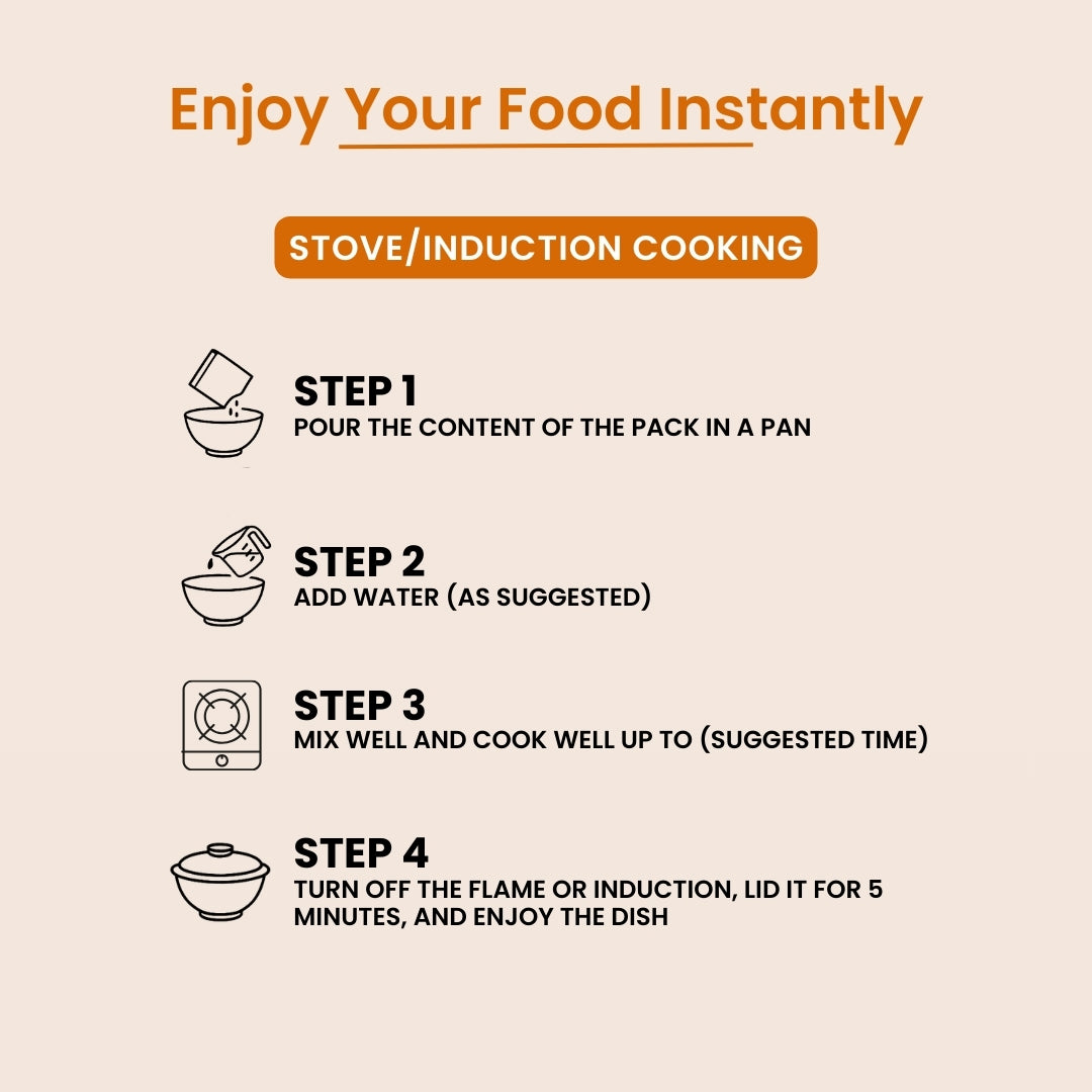 - Open & Rehydrate: Simply open the pack, add hot water, and let the Rajma Masala (Without Onion & Garlic) rehydrate, allowing the flavors to develop.