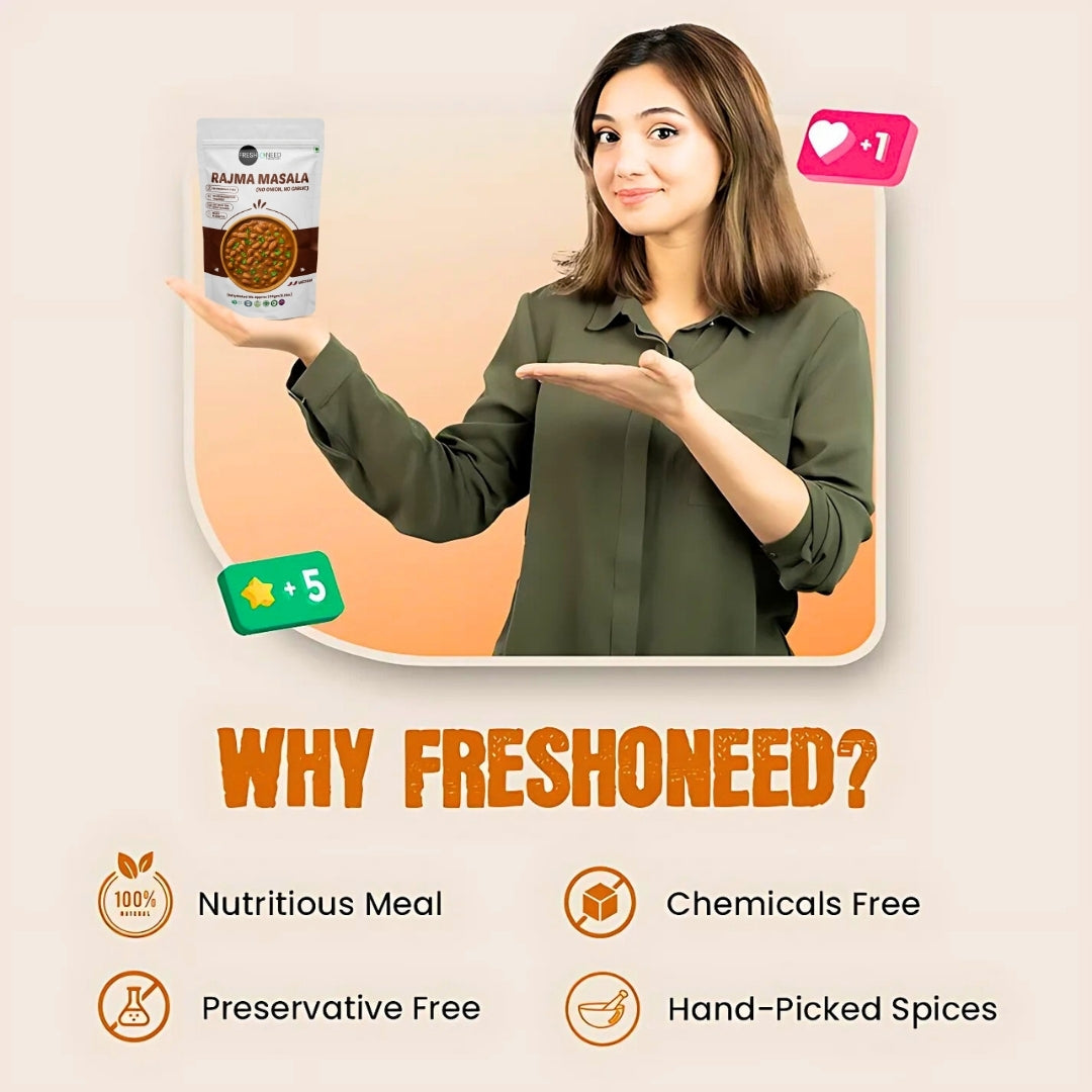 Discover the taste of Rajma Masala (Without Onion & Garlic) with Freshoneed – order now and relish the rich and authentic flavors of this traditional dish in a convenient, ready-to-eat format.
